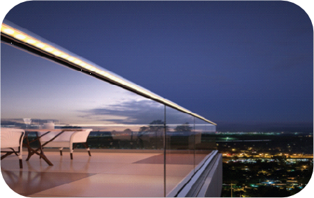 We also supply and install LED technology. The LED lighting is available in the round frameless balustrade handrails as well as the aluminium channel balustrades.
